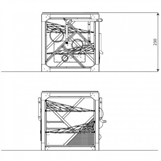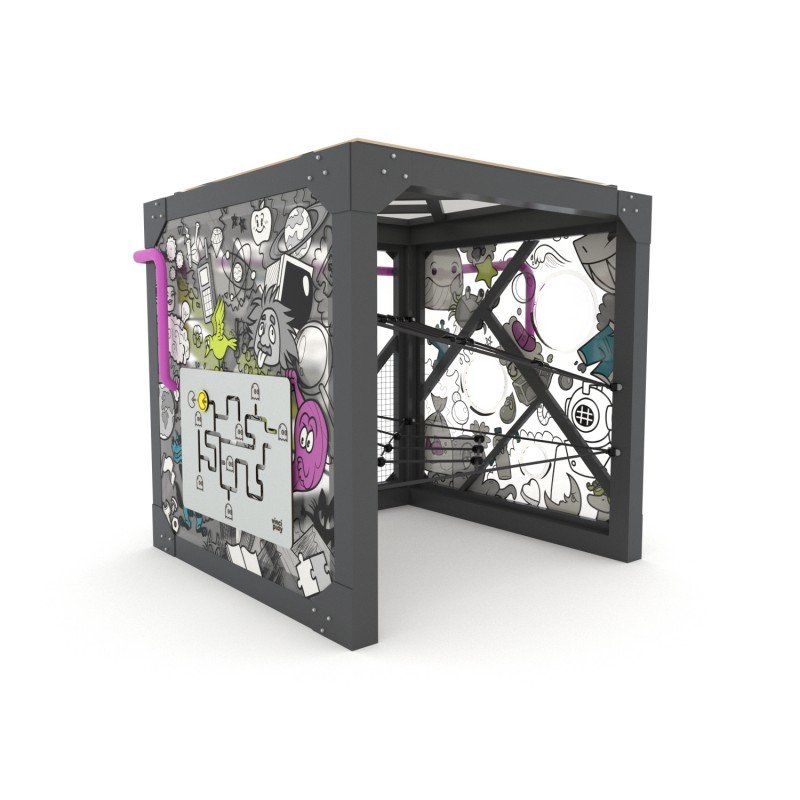 Patvari ir saugi lauko konstrukcija, pagaminta iš karštai cinkuoto ir milteliniu būdu dengto plieno bei atsparių oro sąlygoms HPL ir polikarbonato elementų. Skirta viešosioms žaidimų aikštelėms, sertifikuota pagal saugumo reikalavimus, nėra aštrių briaunų ar pavojingų tarpų. Produktas sertifikuotas pagal EN 1176-1:2017+A1:2023 standartą. Suteikiama garantija.