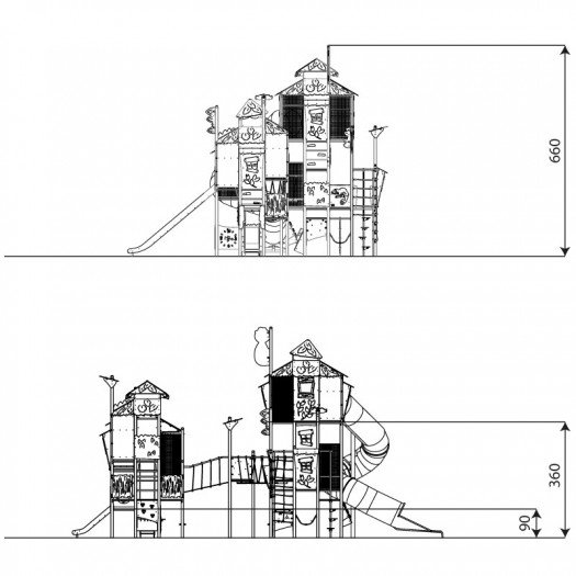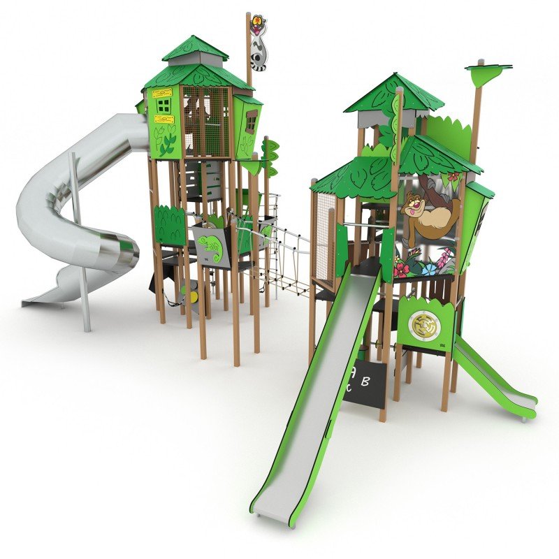Aukštos kokybės žaidimų kompleksas su nerūdijančio plieno konstrukcija ir patvariomis HPL plokštėmis. Konstrukcija yra saugi – nėra aštrių briaunų ar pavojingų angų, tinkama naudoti viešosiose žaidimų aikštelėse. Įrangai suteikiama garantija, priklausomai nuo komponentų tipo. Produktas sertifikuotas pagal EN 1176-1:2017+A1:2023 standartą.
