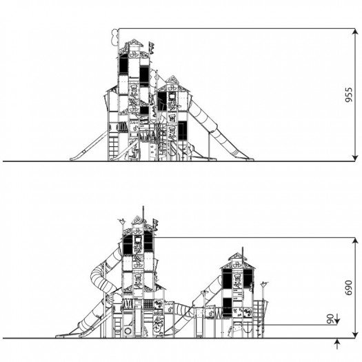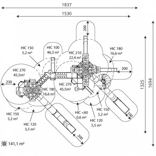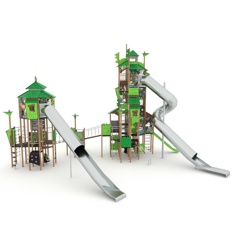 Aukštos kokybės žaidimų kompleksas su nerūdijančio plieno konstrukcija ir patvariomis HPL plokštėmis. Konstrukcija yra saugi – nėra aštrių briaunų ar pavojingų angų, tinkama naudoti viešosiose žaidimų aikštelėse. Įrangai suteikiama garantija, priklausomai nuo komponentų tipo. Produktas sertifikuotas pagal EN 1176-1:2017+A1:2023 standartą.