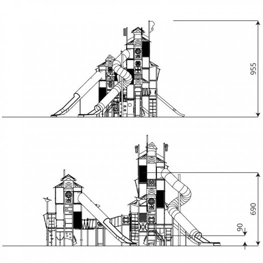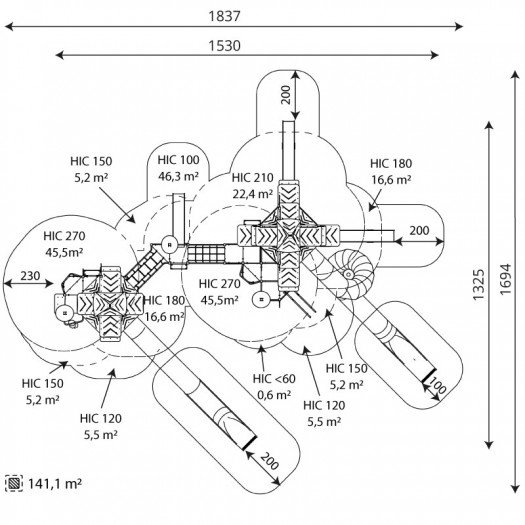 Aukštos kokybės žaidimų kompleksas su nerūdijančio plieno konstrukcija ir patvariomis HPL plokštėmis. Konstrukcija yra saugi – nėra aštrių briaunų ar pavojingų angų, tinkama naudoti viešosiose žaidimų aikštelėse. Įrangai suteikiama garantija, priklausomai nuo komponentų tipo. Produktas sertifikuotas pagal EN 1176-1:2017+A1:2023 standartą.