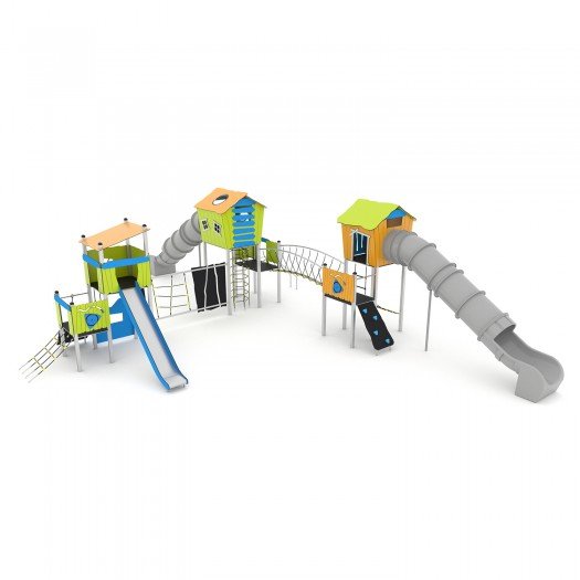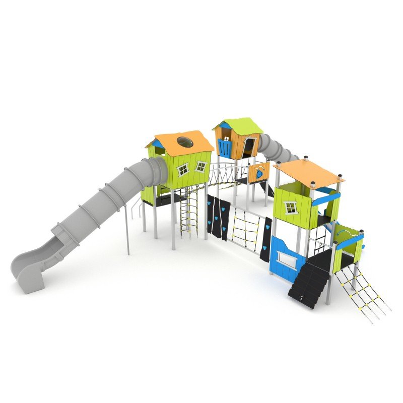 Aukštos kokybės vaikų žaidimų kompleksas su patvaria cinkuoto plieno konstrukcija, HDPE bei HPL elementais. Konstrukcija yra saugi – nėra aštrių briaunų ar pavojingų angų. Tinkama naudoti viešosiose žaidimų aikštelėse. Įrangai suteikiama iki 30 metų garantija, priklausomai nuo komponentų tipo. Produktas sertifikuotas pagal EN 1176-1:2017+A1:2023 standartą.